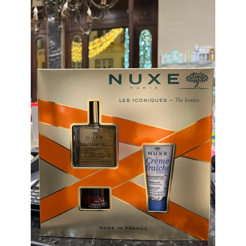 NUXE COFRE 2025 LOS ICONICOS PRODIGIEUX (ACEITE PRODI 50 ML CHAMPU 50 ML BALSAMO LABIAL)