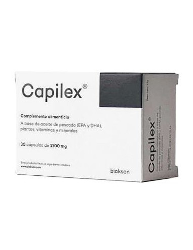 Complemento alimenticio a base de de aceite de pescado (EPA y DHA), plantas, vitaminas y minerales.