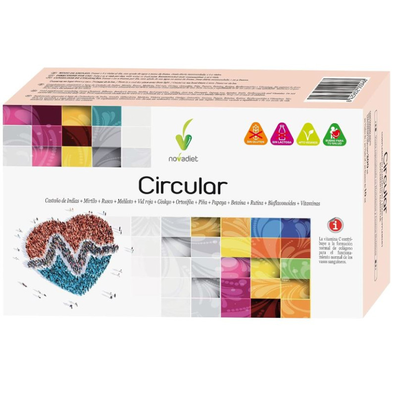 NOVADIET CIRCULAR 60capsulas citrus aurantium, castaño de indias, mirtilo, rusco, meliloto, vid roja, ginkgo, rutina