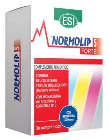 ESI NORMOLIP 5 FORTE 36 comprimidos monacolina del arroz rojo y coenzima Q10 (con berberina 500 mg)