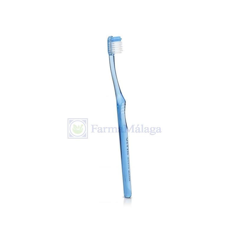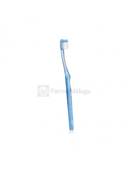 Cepillo de cabezal pequeño y filamentos redondeados en sus extremos para no dañar las encías.